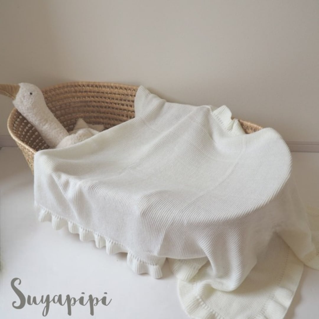 フリルが可愛い♪ホワイトフリルブランケットです♪