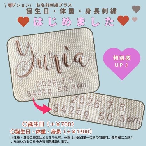 刺繍屋さんだからできる、大きな名前入りのブランケット